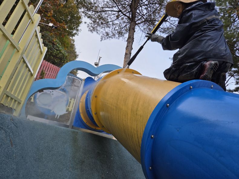 야외시설물을 고압세척작업 하였습니다.