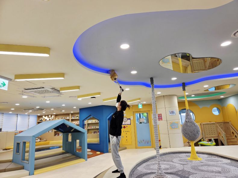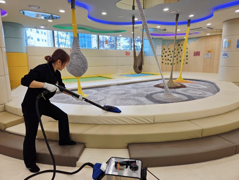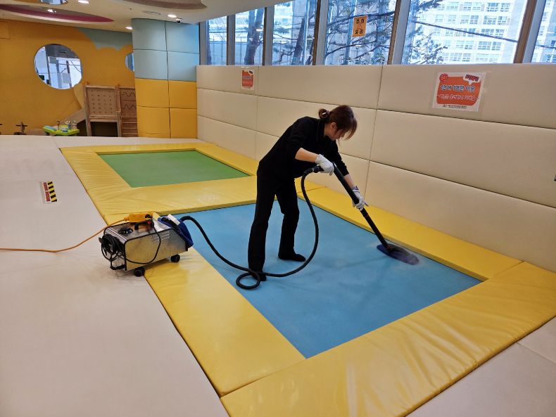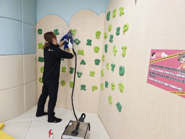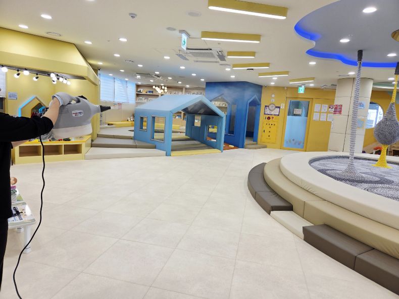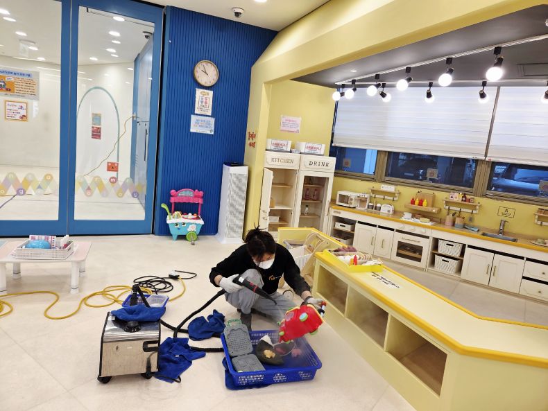 장난감과 시설물을 스팀세척살균소독 하였습니다.