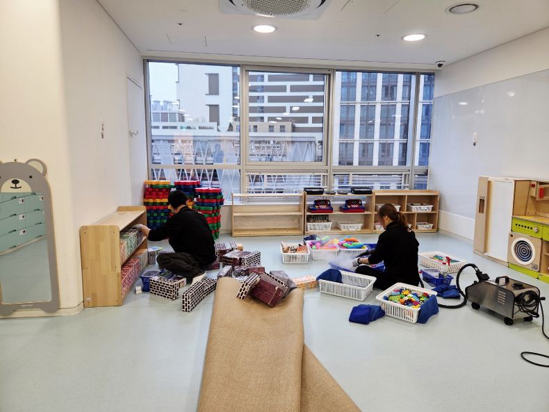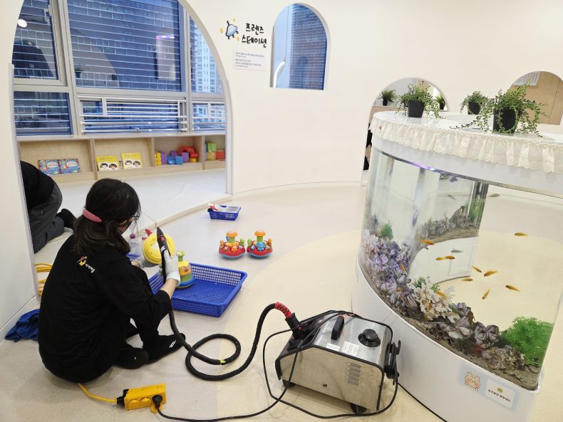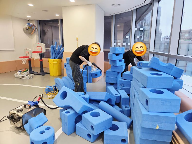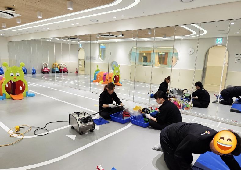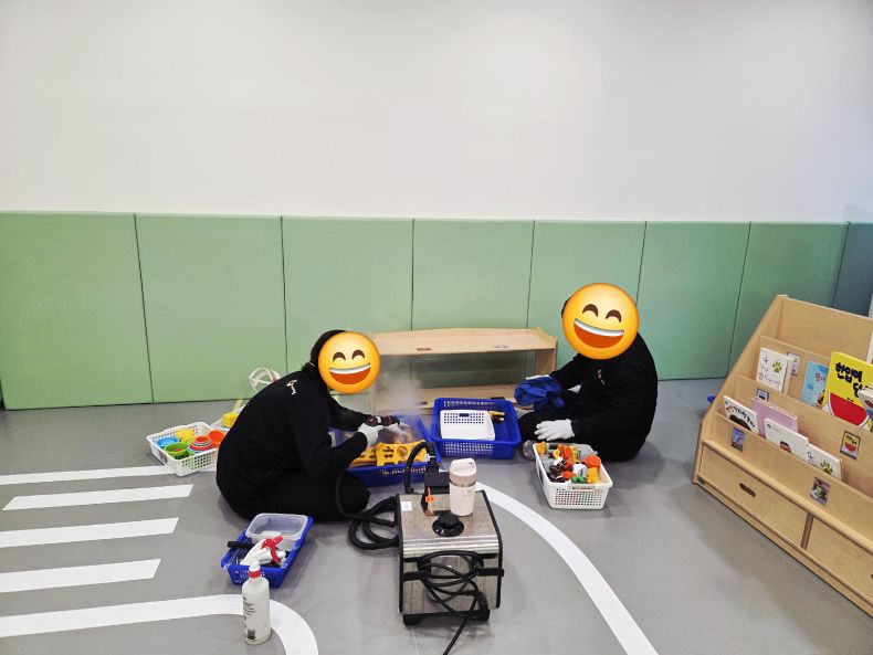 7개의 유희실 교구등을 스팀세척살균소독 완료 하였습니다.