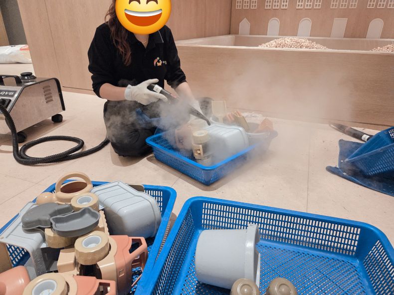 신라호텔 키즈라운지 편백나무칩 놀이터와 장난감을