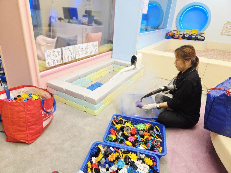 시설물과 장난감등을 세척살균소독 하였습니다.