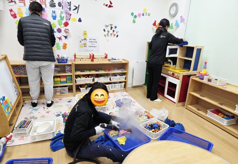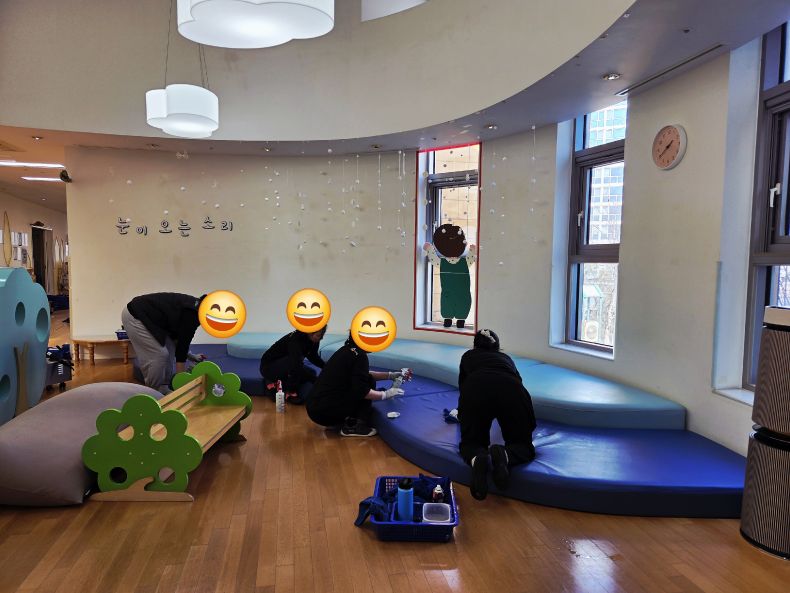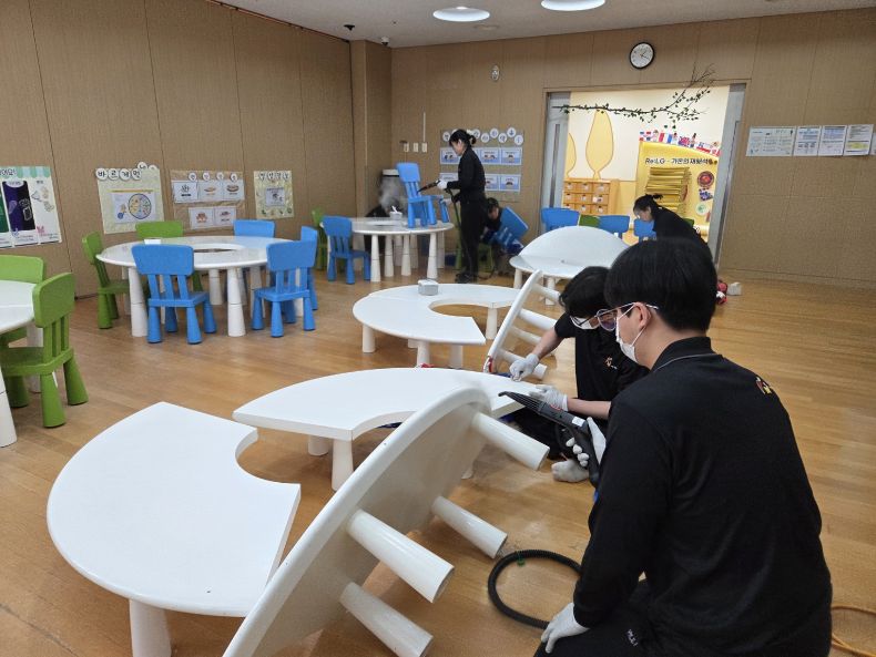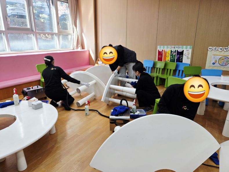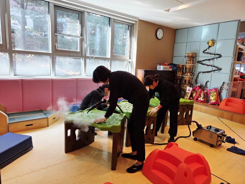 책걸상과 교구장, 교구재를 스팀세척살균소독 하였습니다.