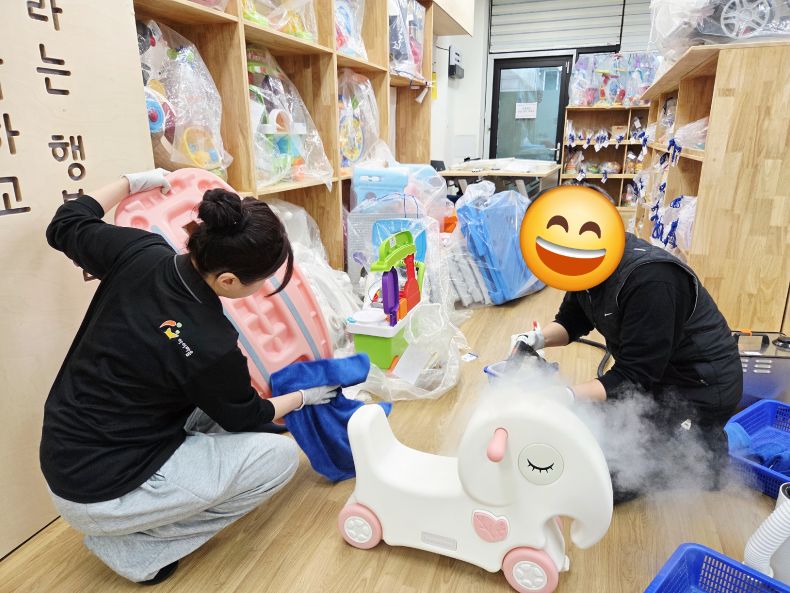 놀이터장난감을 스팀세척살균소독 하였습니다.