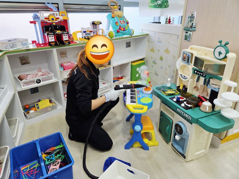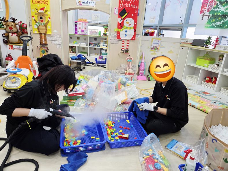 장난감과 시설물을 스팀세척살균소독 하였습니다.