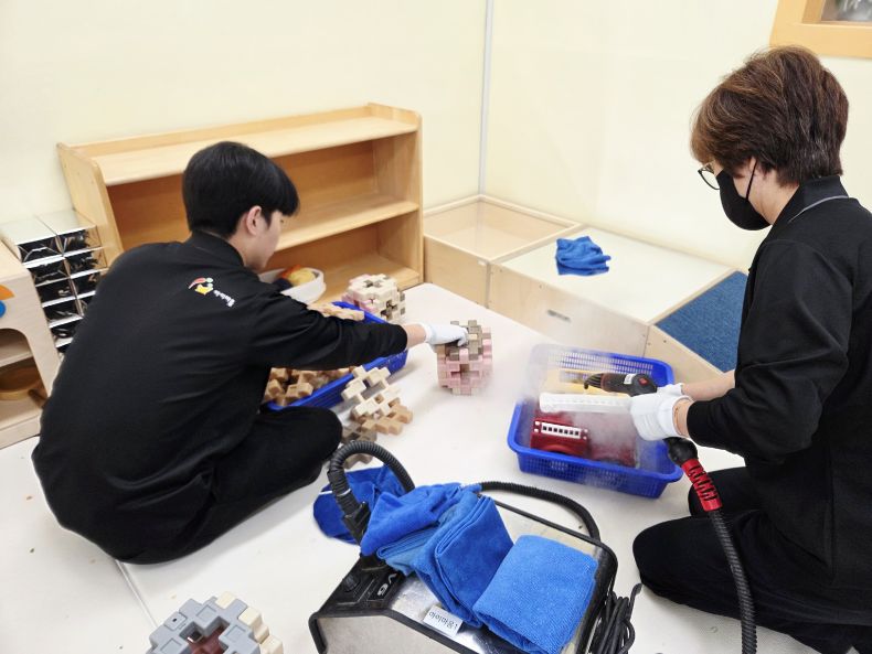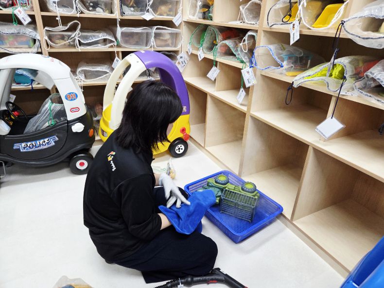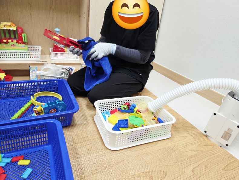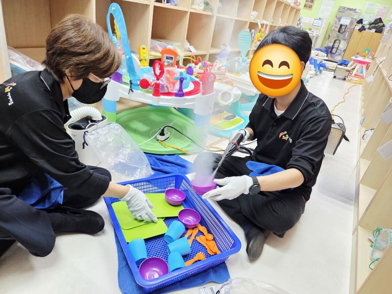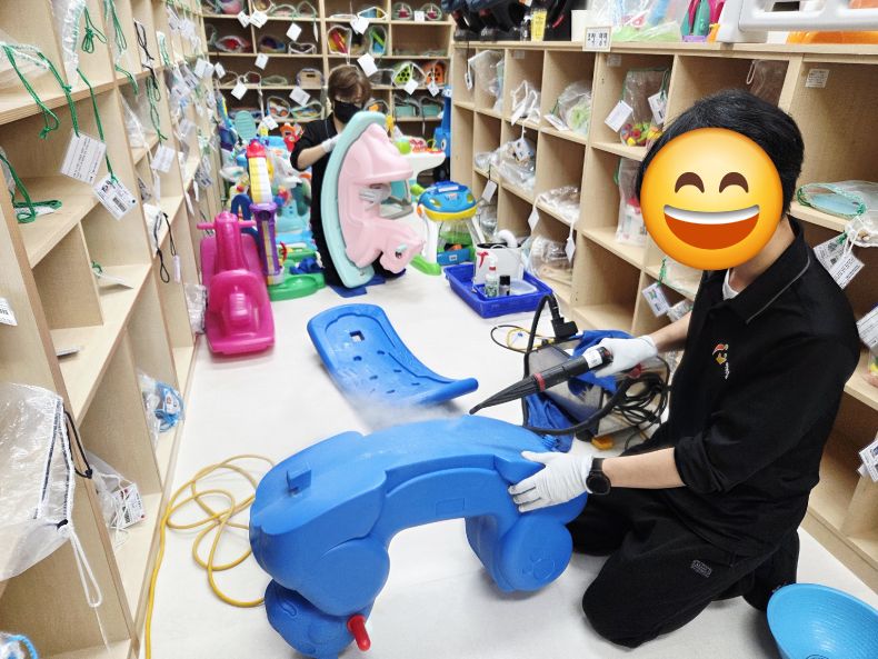 상담치료실, 시간제보육실 등 장난감을 스팀세척살균소독 하였습니다.