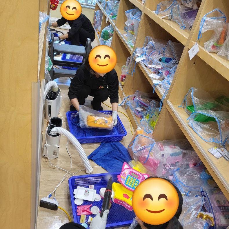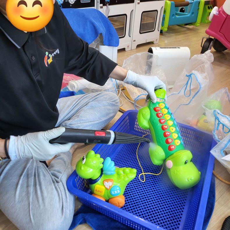 장난감을 스팀세척살균소독 하였습니다.